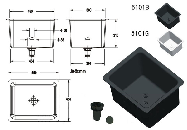 另附PVC材質組合式水槽落水頭堵臭裝置,具有過濾效果及堵臭功能。水龍頭材料為鑄銅材料瓷質水閥。